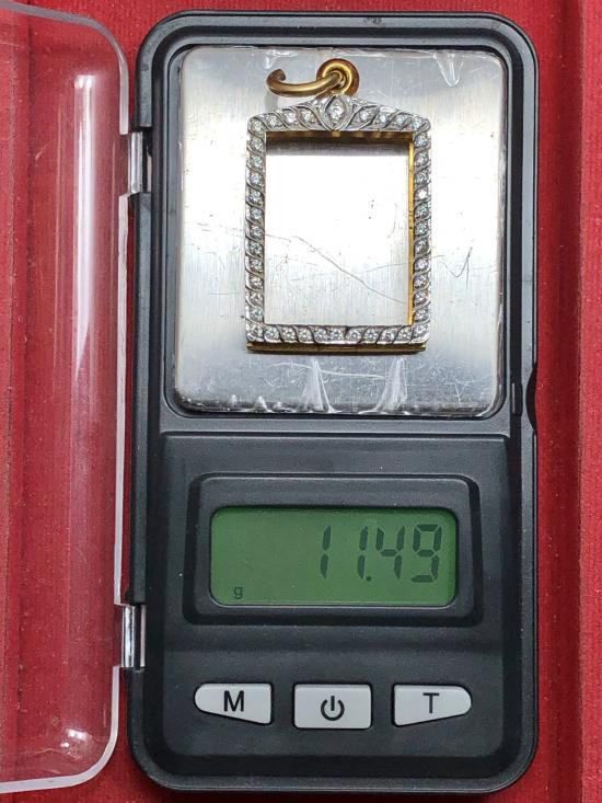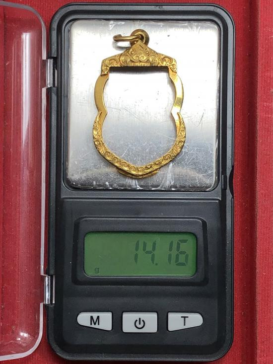 ตลับพระทองคำลงยาใส่พระสมเด็จ น้ำหนักแยกแต่ทองคำ 23.7 กรัม (เช็คเปอร์เซ็นต์ทองคำได้ 80.76%) |