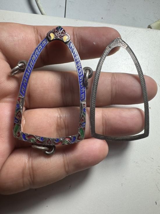 กรอบเงินรูปไข่ เงินลงยา งานสุโขทัย เงินแท้ 92 % ครับ |