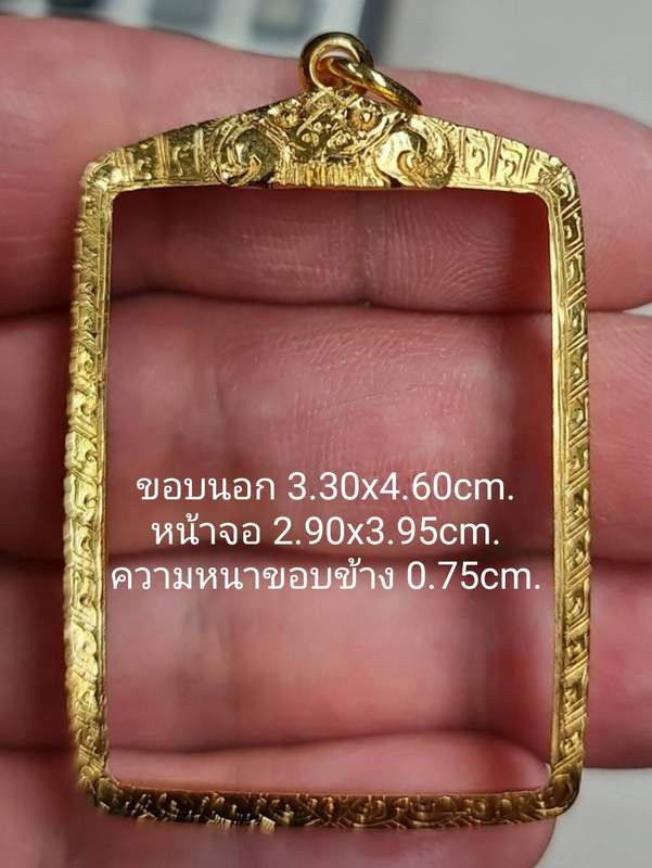 กรอบทองมือสอง ใส่เหรียญหลวงพ่อผางรุ่นแรก หลวงพ่อคูณ17 หลวงปู่ทวดรุ่น 2,4 และเหรียญทั่วไปที่ไกล้เคียง หน้าจอกว้าง 2.60 ซม., สูง 3.90 ซม. น้ำหนัก 1.56 กรัม เคาะเดียว |