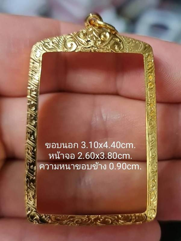 ---(วัดใจ)---กรอบทองมือ1 ใส่ปรกใบมะขาม ขนาดหน้าจอกรอบด้านใน 1.4x0.8 นน.0.68--- |