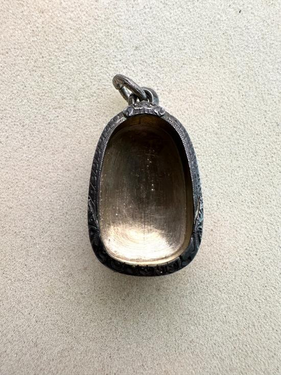 ตลับเงิน ใส่เหรียญรูปไข่ แกะมือสวยๆ ครับ |