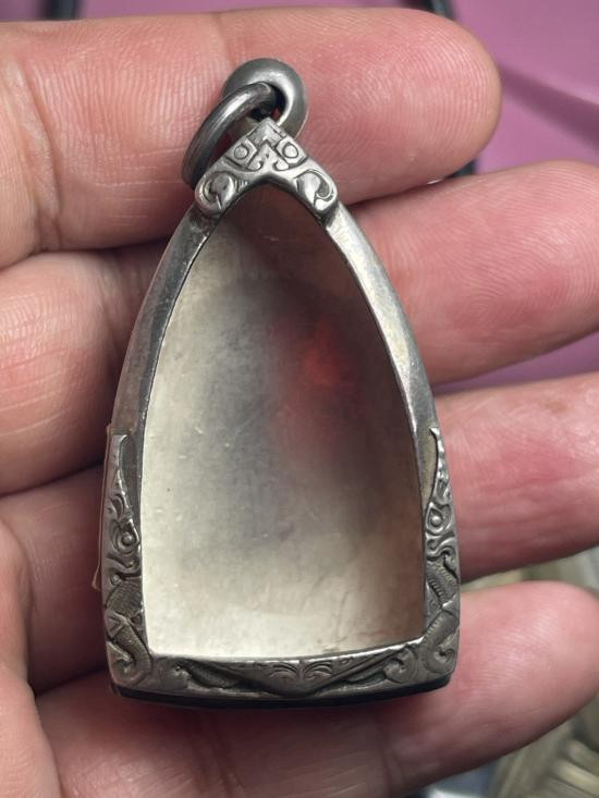 กรอบเงินขึ้นมือแกะลายคมๆเก่าๆ(แถมพระในกรอบไปด้วยครับตามภาพตงปก) |