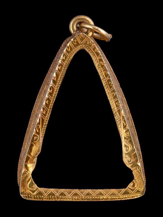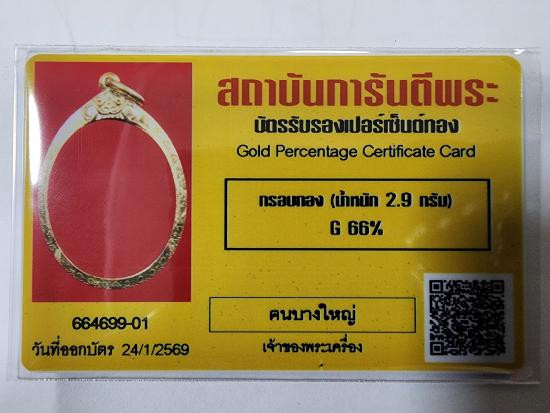 ***วัดใจ ***กรอบทองคำมือสอง แกะจากพระ ไม่เคยแขวนใช้งาน พร้อมบัตรรับรองทอง 70% น้ำหนักหลังทำความสะอาดแล้ว 1.3411 กรัม ขนาด 3.2 x 2.3 cm. |