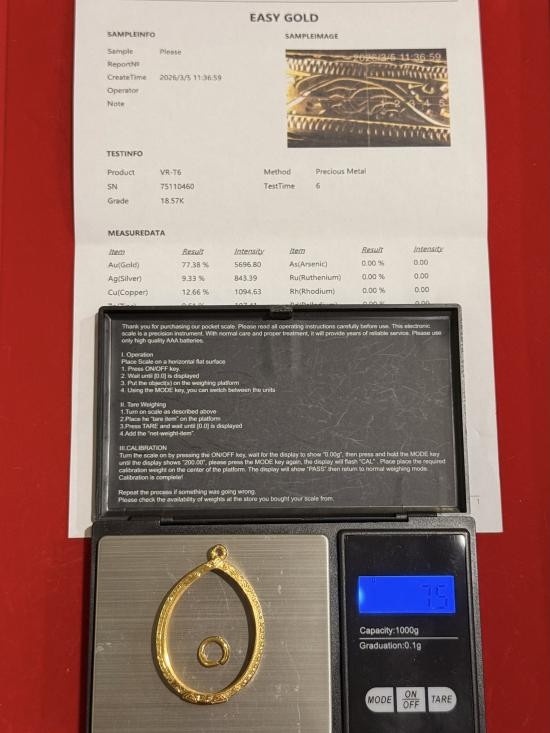 กรอบทอง คำใส่พระสมเด็จ ทองคำ G 76 % หนัก 5.20 กรัม มือสองสภาพสวย |