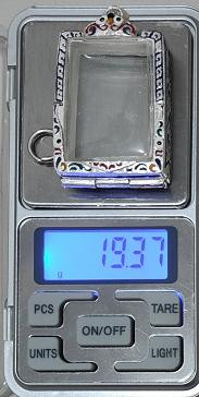 วัดใจ 100 กรอบเงินมือหนึ่งลงยา น้ำหนัก 19.37 กรัม ใส่พระสมเด็จวัดระฆัง ราคาเบาๆ เคาะเดียวแดง |