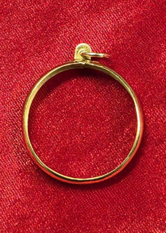 ตลับทองคำ ใส่เหรียญหลวงพ่อแดงวัดเขาบันไดอิฐรุ่น 1-2-3-4 แบบเก็บห่วง เนื้อทองคำ 77 % น้ำหนัก 7.5 กรัม สภาพสวยครับ |