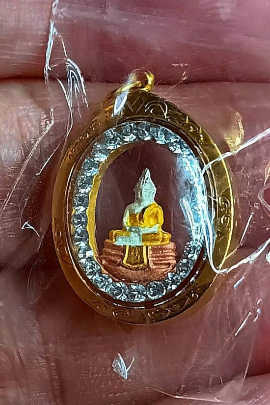 วัดใจทองกำลังแพงเคาะเดียวแดง!.หลวงพ่อโสธรใหญ่ เนื้อ 3 K สวยๆ เลี่ยมทองแท้ห่วงเชื่อมกันน้ำล้อมพลอยขาว พร้อมบูชาขึ้นคอ.A |