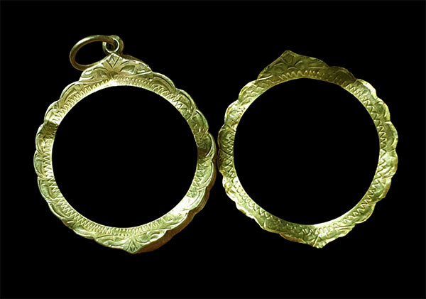 (((กรอบมือ2 ทองคำแท้))) สำหรับเหรียญกลมขนาดเล็ก/ลูกอม-ชานหมากคณาจารย์ น้ำหนักทอง 3.05กรัม กรอบสภาพสวยๆครับ |