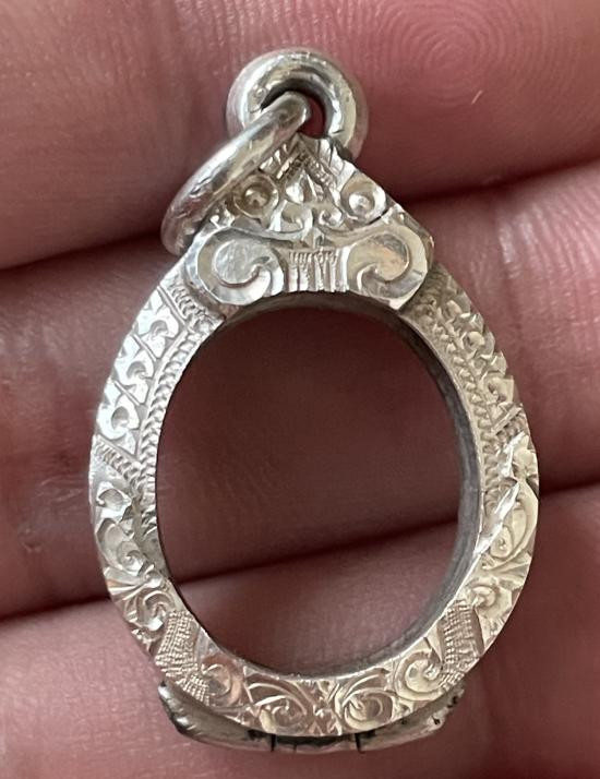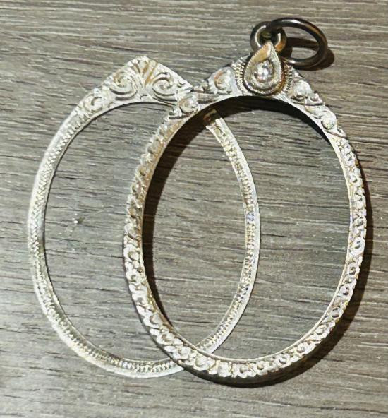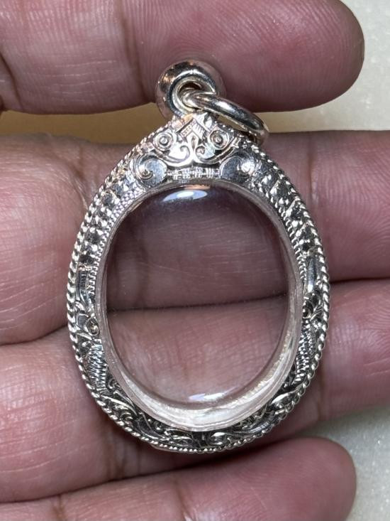 เคาะเดียว กรอบเงินสุโขทัย 96.5% ลายดอกพิกุล เนื้อหนา จอในกว้าง 2 ซม สูง 2.6 ซม. ทรงสำหรับพรหางหมากหลวงพ่อฤาษีหรือใกล้เคียง กรอบสั่งตัดสภาพใหม่ผมสั่งไว้แล้วไม่ได้ใช้ |