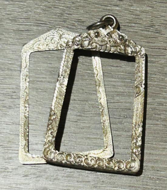 กรอบเงินพร้อมพระสภาพสวยงานเก่าตีเกลียวสวยงาม |