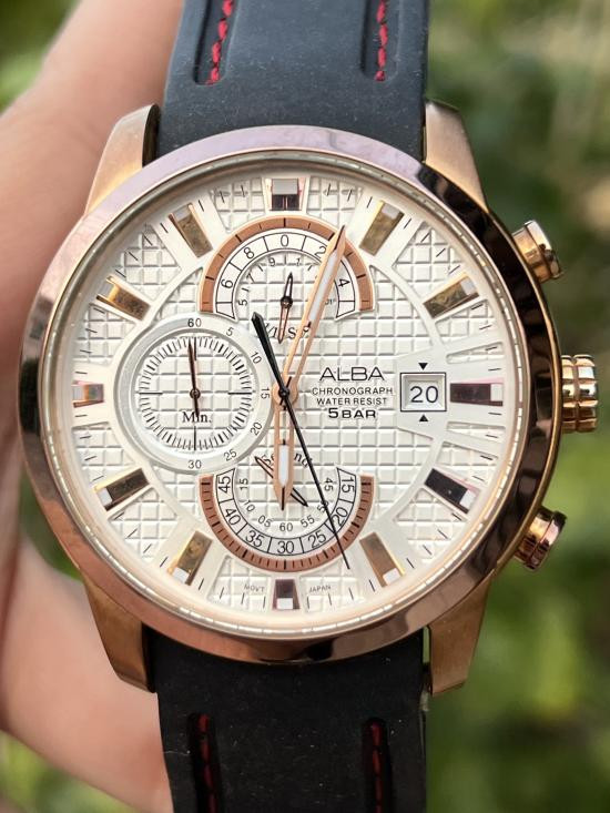 +++HOT!!! สวยแชมป์!!! ยอดนิยม!!! ALBA Prestige Chronograph Ref.AM3178X1 Rose Gold Pattern Dial Quartz อย่างสวย! มีระบบจับเวลา สายดำเดินด้ายแดง อย่างหล่อ+++ |