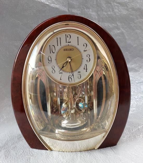 นาฬิกาตั้งโต๊ะโบราณยี่ห้อ Seiko รุ่นที่มีตุ้มเหวี่ยงแบบหมุน สภาพใหม่แกะกล่อง มีใบรับประกัน และคู่มือ |