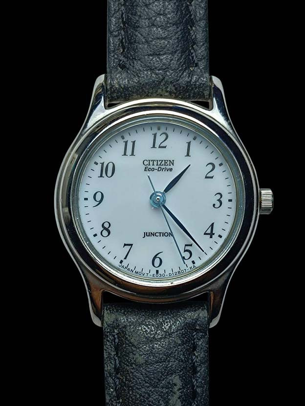 นาฬิกาข้อมือผู้หญิง ยี่ห้อ CITIZEN ECO DRIVE รุ่น E030-S93924 HSB ขนาดตัวเรือน+เม็ดมะยม 25.5 มม. สายหนังขนาด 12 มม.-ปลายสายขนาด 9.5 มม. เครื่อง Japan Movt กลไก ECO DRIVE (พลังงานแสง) เดินปกติ ไม่ผ่านก |