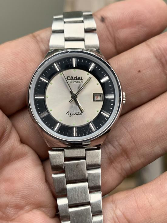วินเทจ Cadet 17 jewels crystal 38 มิลโดยประมาณ ระบบขึ้นลานด้วยมือ เดินปกติวันที่เปลี่ยนตามเวลาปกติหาสายหนังใส่สวยเลย จัดให้เคาะแรกครับ |