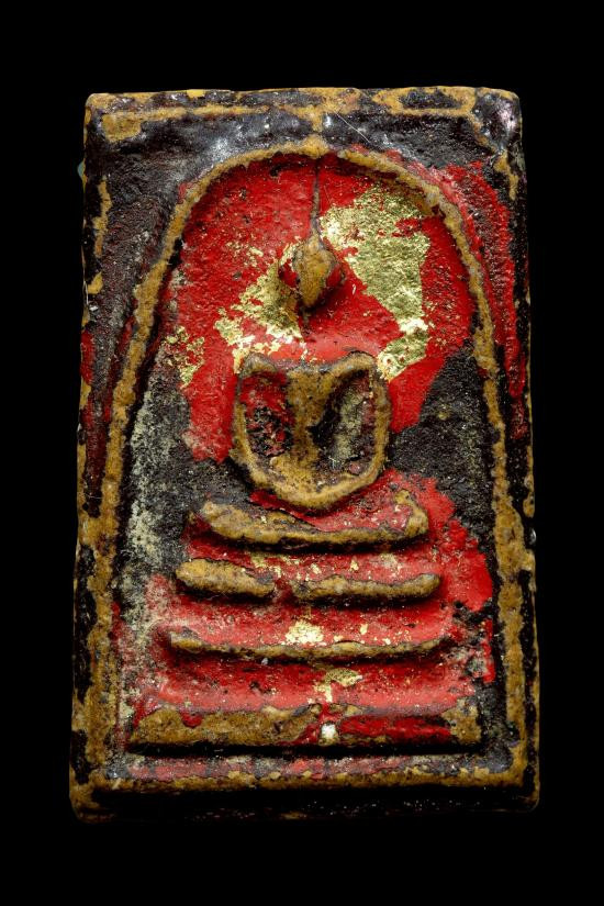 พระสมเด็จเนื้อผงเก่า เนื้อหาแกร่ง มีร่อยงรอยเคยลงรักแดงมาก่อนไม่ทราบที่