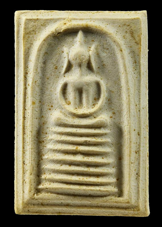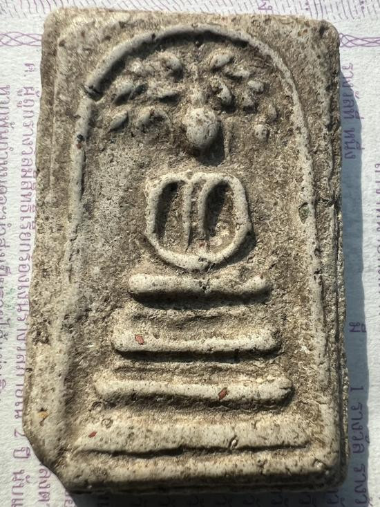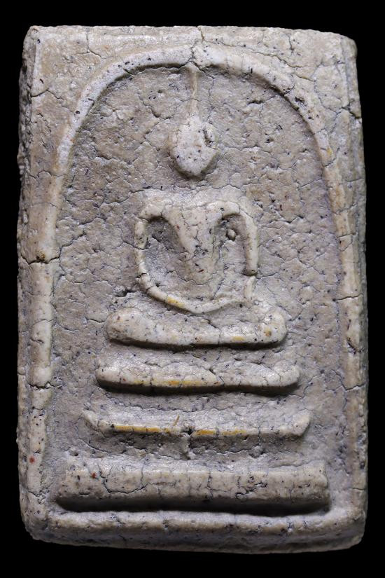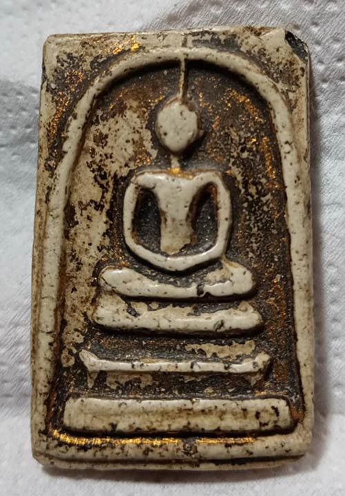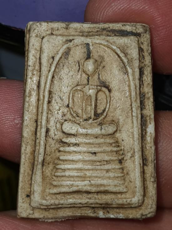 พระสมเด็จเนื้อผงไม่ทราบที่ มีกระเทาะด้านบนขวาตามรูป |