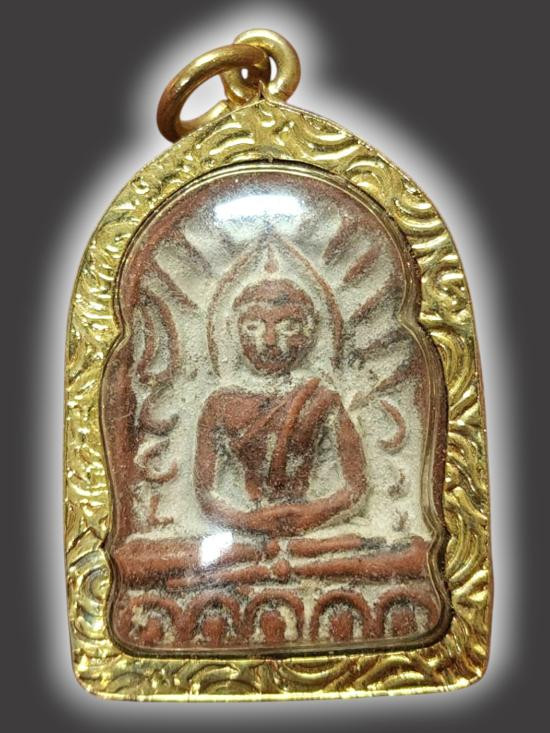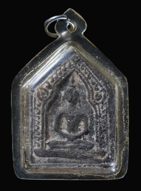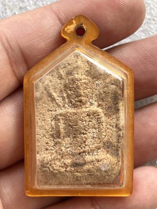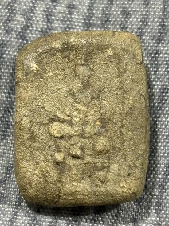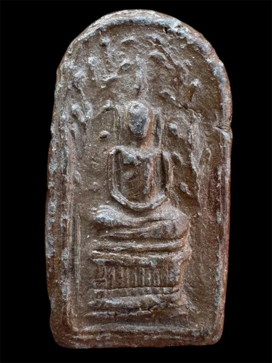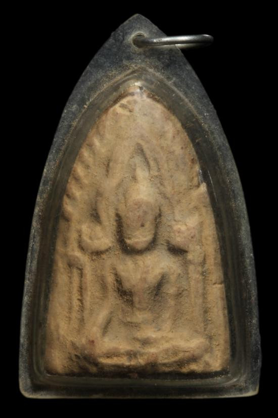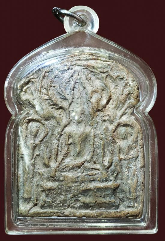 พระเนื้อดิน พิมพ์ปรกโพธิ์ หลังเรียบ เลี่ยมกันน้ำจับขอบ ขนาดประมาณพิมพ์คะแนน ไม่ทราบที่ |