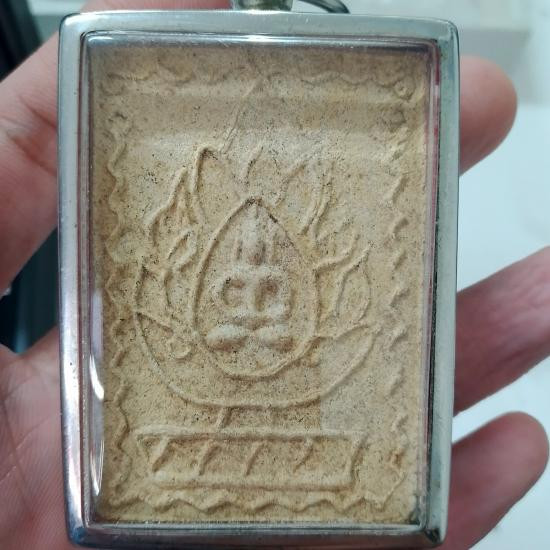 พระเนื้อผงเก่าพร้อมเลี่ยมเงินยกซุ้มหนาๆไม่ทราบที่ |