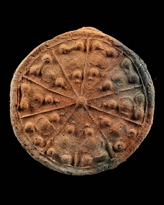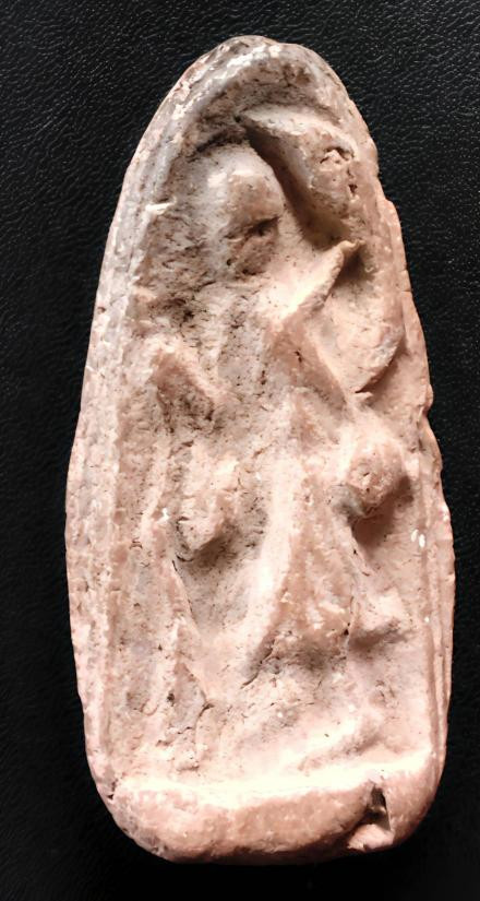 พระเนื้อดินพิมพ์ขี่หนุมาน ไม่ทราบที่ มีรอยถักลวด |