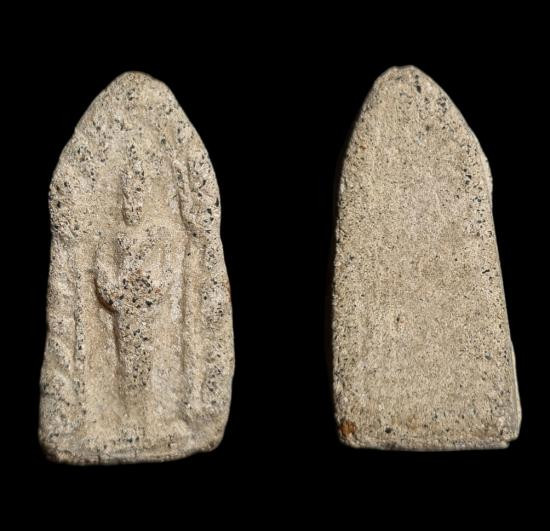 A8367.พระเนื้อผงพิมพ์หยดน้ำ เก่าๆ ไม่ทราบที่ครับ เคาะเดียวเเดง