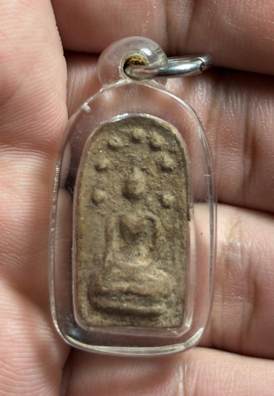 พระเนื้อผงมีเลี่ยมพลาสติก เนื้อเก่า ได้มาจากบ้านป้า ตจวไม่รู้ที่ |