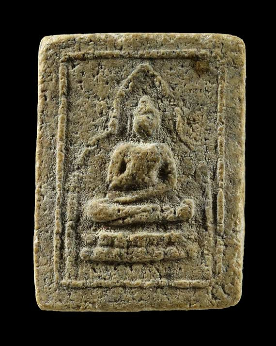 พระเนื้อผงคลุกรัก หลังยันต์ อุดผง |