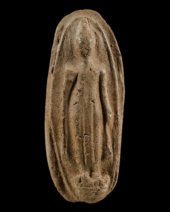A8797.พระเนื้อดิน พิมพ์พระรอด ไม่ทราบที่ เคาะเดียวเเดง |