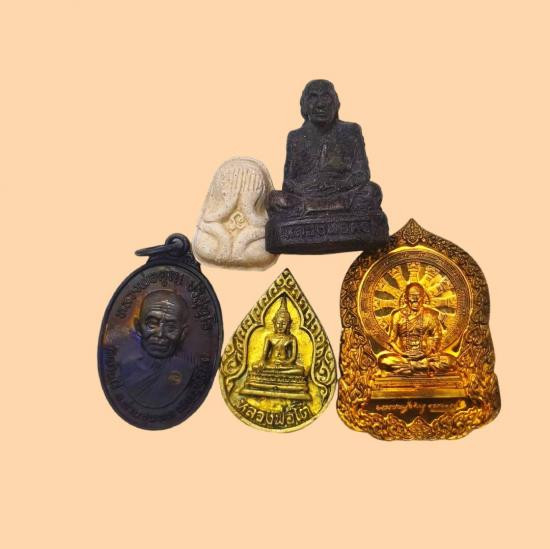 เคาะเดียว 3 เหรียญ 3หลวงพ่อ + พระผง 2 องค์ แท้ไม่ทราบรุ่น ไม่ทราบปีครับ |