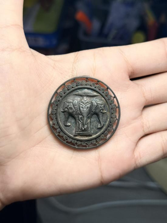 เคาะเดียวแดง เหรียญช้างสามเศียร หลัง เจดีย์ เนื้อเงิน หนักประมาณ 10-11 กรัมกว่าๆๆ ไม่ทราบที่ ข้างเป็นข้างกระบอก มีอายุน่าจะใกล้ๆ 100 ปี |