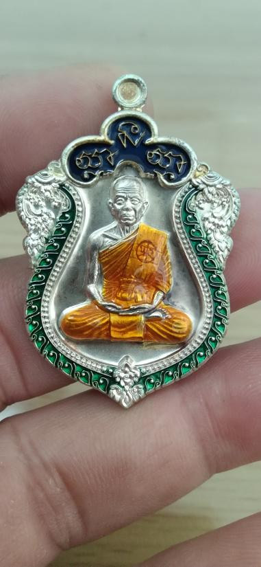 เหรียญนั่งพานเจริญพรพันล้าน ปี64 เนื้อทองทิพย์ลงยาเหลือง (แจกในพิธี) No.2696 |