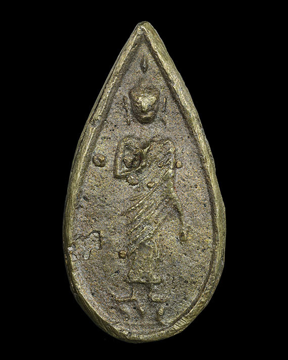 พระรูปหล่อยืน ไม่ทราบที่ สูง 3.9 ซม. เนื้อทองเหลือง |