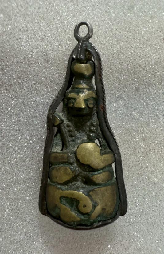 พระหล่อ พิมพ์นาคปรก เนื้อโลหะ ไม่ทราบที่ เก่ามาก ความสูงประมาณ 3.5 ซม. |