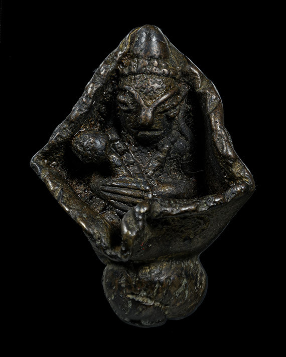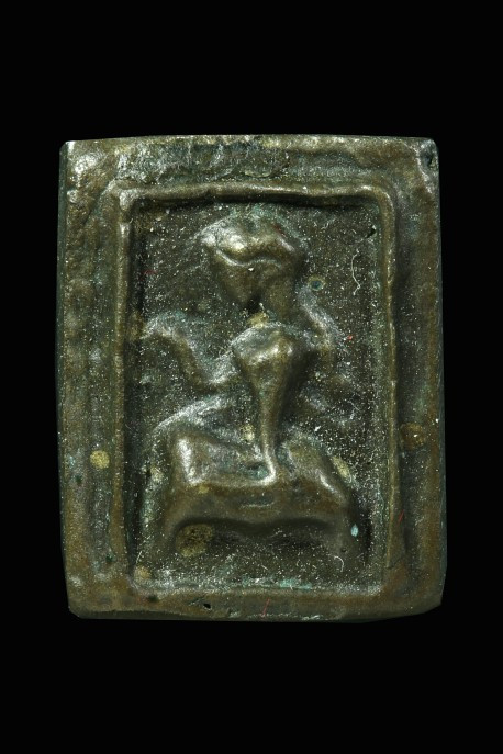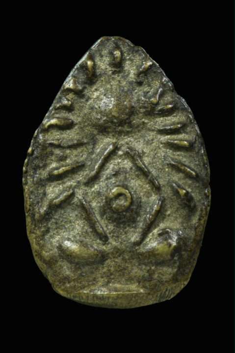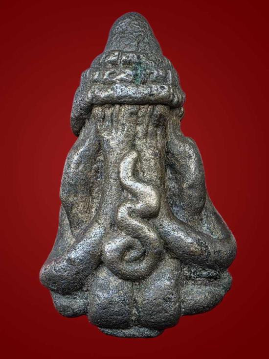 ปิดตาเศียรแหลม หล่อโบราณ ศิลปะเขรมร มีอายุ ไม่ทราบที่ สวยครับ |