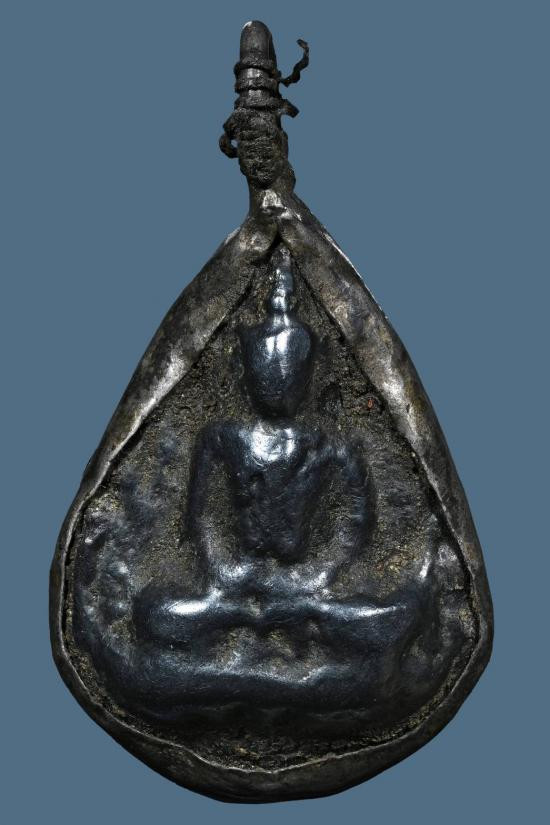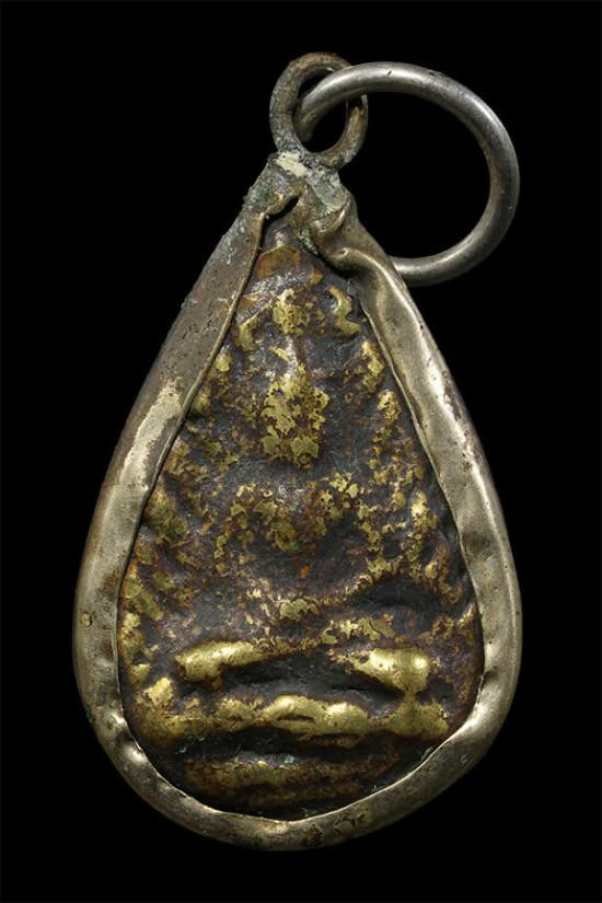 เหรียญหล่อหยดน้ำ เนื้อเมฆพัด เลี่ยมเงินเก่า ไม่ทราบที่ |