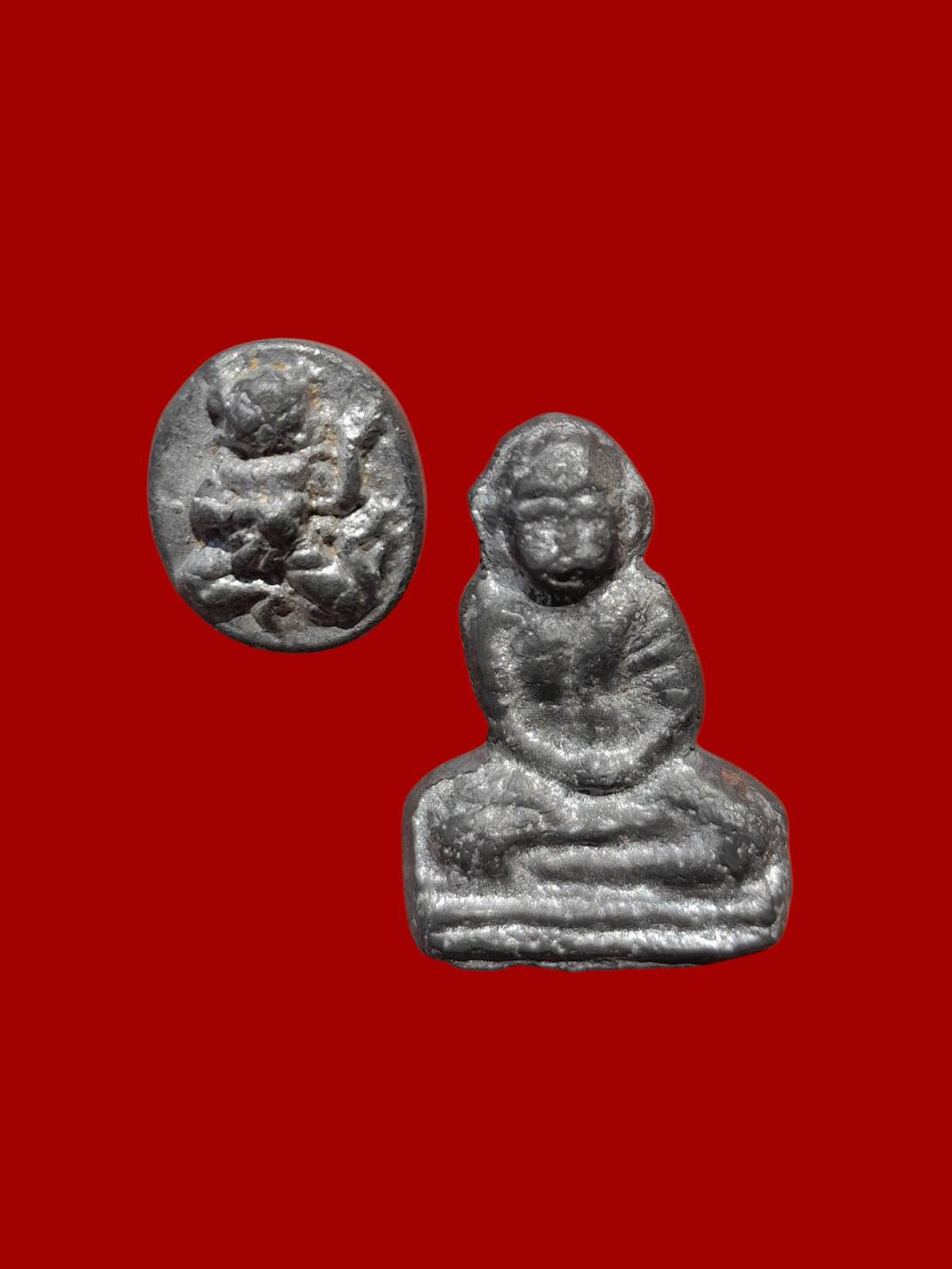 พระหล่อพิมพ์กลีบบัว หังยันต์ เนื้อตะกั่ว ไม่ทราบที่ครับ |