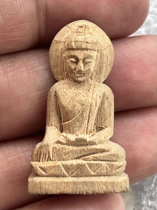 พระไม้แกะไม่ทราบที่ด้านหลังมีจารเหมาบ้านได้มา |