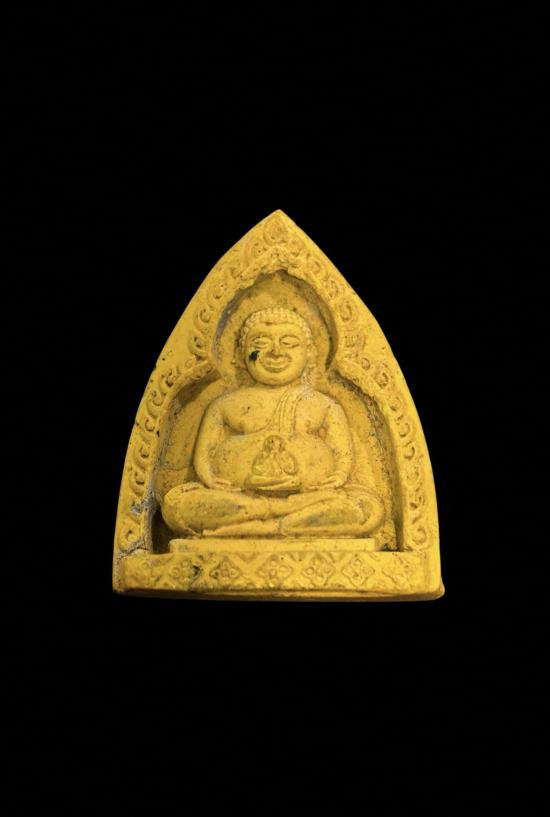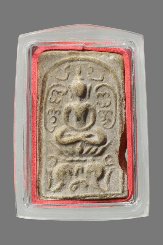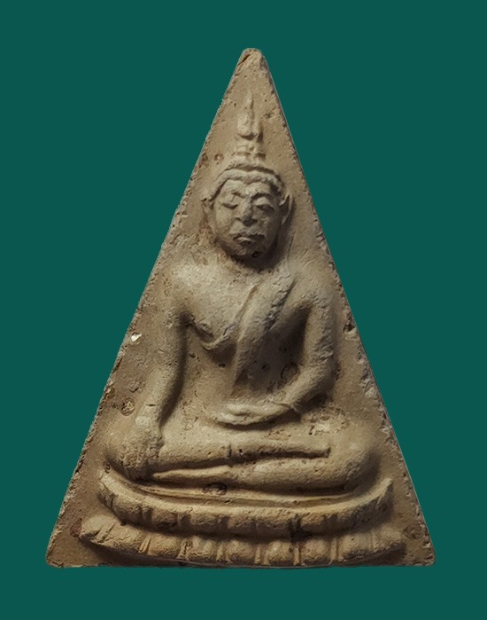 พระของขวัญรุ่น 4 พิมพ์สามเหลี่ยม ปี 2514 เนื้อผง วัดปากน้ำ กทม.(พร้อมบัตรรับรอง)