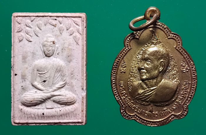 140 .- วัดใจ.@@ เหมา 2 องค์ > " พระผงพุทธโคดม (ปรกโพธิ์ ) + เหรียญ " เหรียญหลวงพ่อเทียม วัดกษัตราธิราชวรวิหาร พระนครศรีอยุธยา @@ |