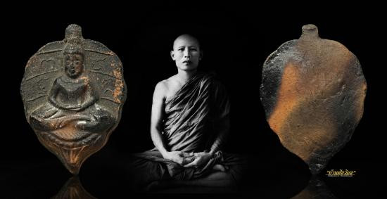 พระโพธิจักร หลวงพ่อลี วัดอโศการาม พิมพ์ใบโพธิ์ เนื้อดิน |