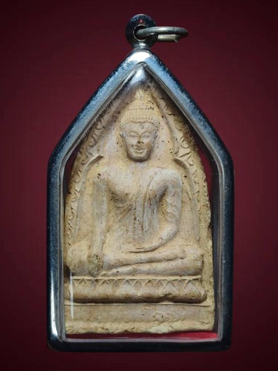 พระพุทธโคดมเนื้อดิน หลวงพ่อขอม วัดไผ่โรงวัว (วัดโพธาราม)จ.สุพรรณบุรี สร้าง พ.ศ.2505 เลี่ยมพลาสติกเก่า วินเทจ |