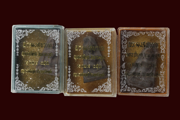 พระผงสุพรรณ ปี 19 ปลุกเสกประเทศอินเดีย เนื้อน้ำตาลเทา (นิยม) พร้อมกล่องเดิม 3กล่อง |