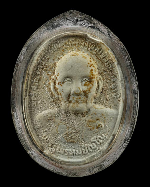 พระผงรูปเหมือน หลวงพ่อปาน (พระครูพิพัฒน์นิโรธกิจ) วัดมงคลโคธาวาส (วัดบางเหี้ย) ต.คลองด่าน จ.สมุทรปราการ ด้านหลังปั๊มอักขระ พิมพ์ใหญ่ เนื้อว่านไม่ทราบปีที่แน่นอน |