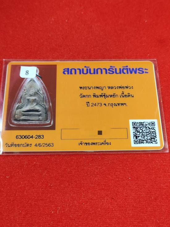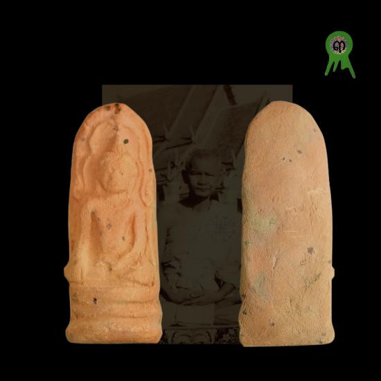 พระพุทธหลวงพ่อขัน วัดนกกระจาบ พิมพ์แซยิด เนื้อดิน ปี2475 พร้อมบัตรรับรอง |