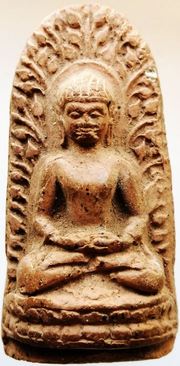 พระหลวงพ่อพริ้ง วัดบางประกอก พิมพ์ปรกโพธิ์ สะดุ้งกลับ เนื้อดิน ปี2460 + บัตรรับรอง G-PRA |
