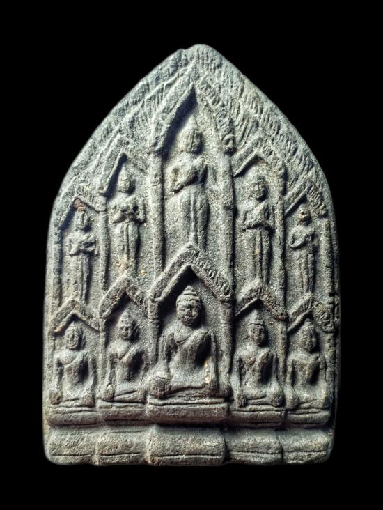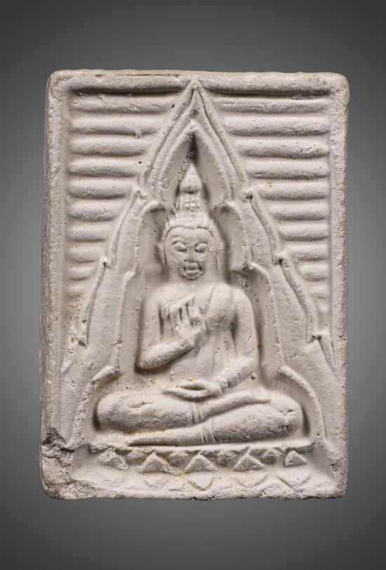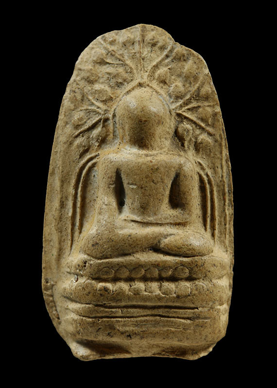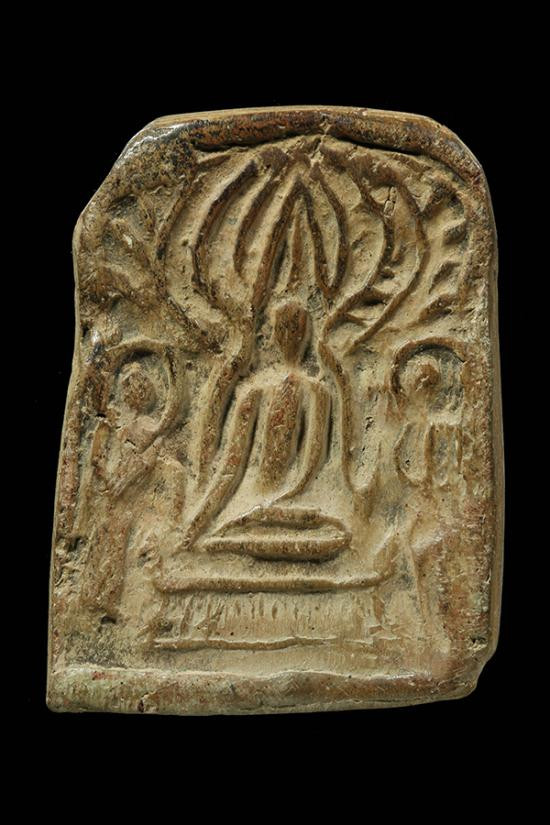 พระเม็ดบัวเนื้อดินพิมพ์ปรกโพธิ์ เจ้าคุณโพธิ์ วัดชัยพฤกษ์มาลา กทม. สร้างประมาณปี 2441 |