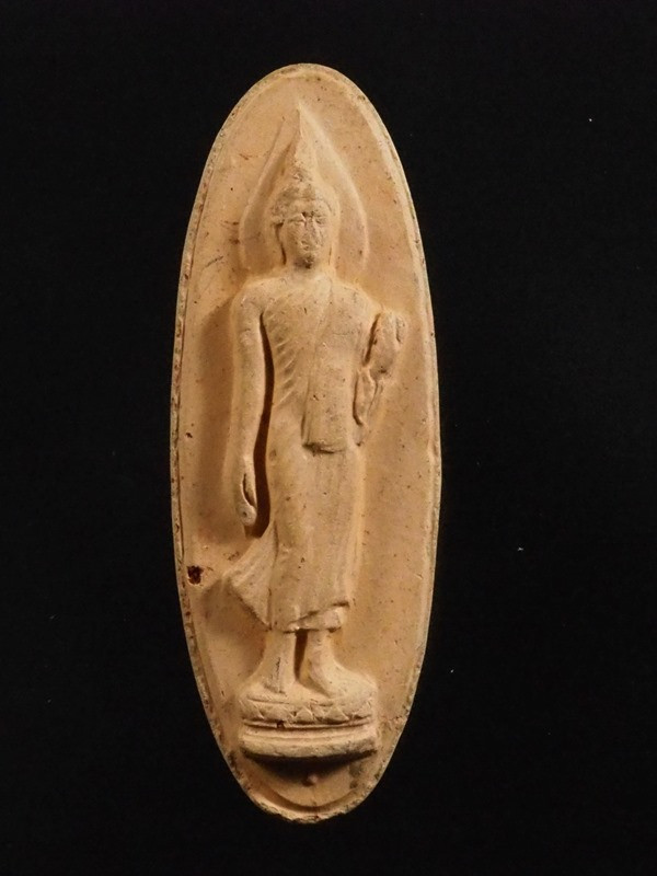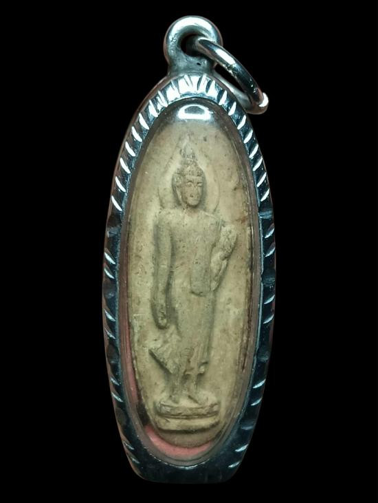 พระลีลา 25 ศตวรรษ พุทธมณฑล นครปฐม ปี 2500 เนื้อดิน ใส่กรอบสแตนเลสเก่า สวยครับ |