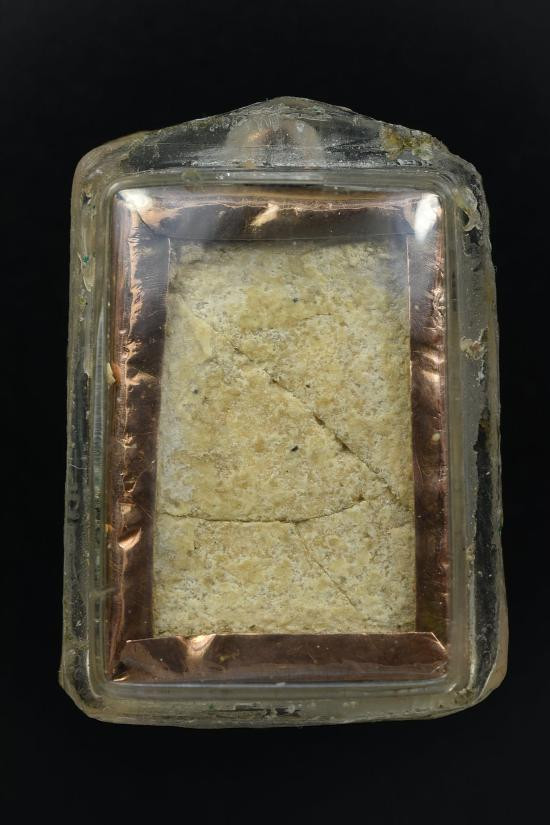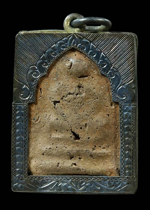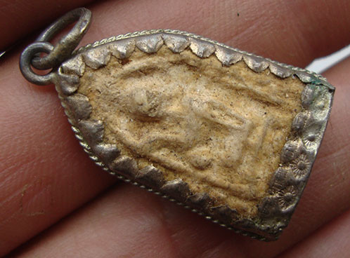 พระเนื้อผง ไม่ทราบที่ ข้างในเลี่ยมนาคเก่า แกะออกจากกรอบทอง |