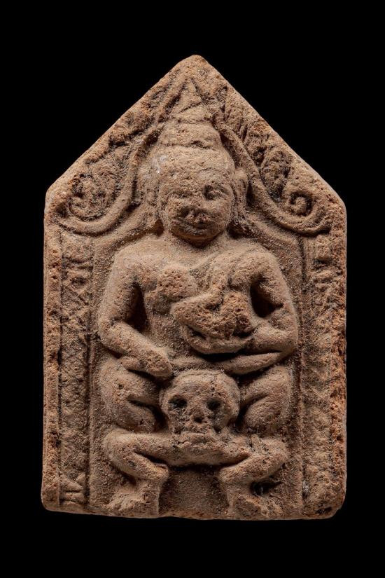 พระเนื้อผงเก่า พิมพ์ปรก มีเกศาหลายเส้น ไม่ทราบที่ |