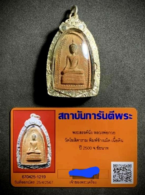 พระสมเด็จเอวเล็ก หลังพระพุทธบาท วัดพระพุทธบาท จ.สระบุรี ปี ๒๕๑๕ หลวงพ่อกวยปลุกเสก |