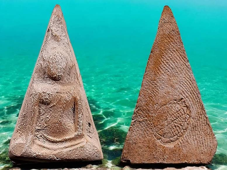 วัดใจ พระพุทธ สมาธิ พิมพ์ห้าเหลี่ยม เนื้อดิน ไม่ทราบที่ครับ |